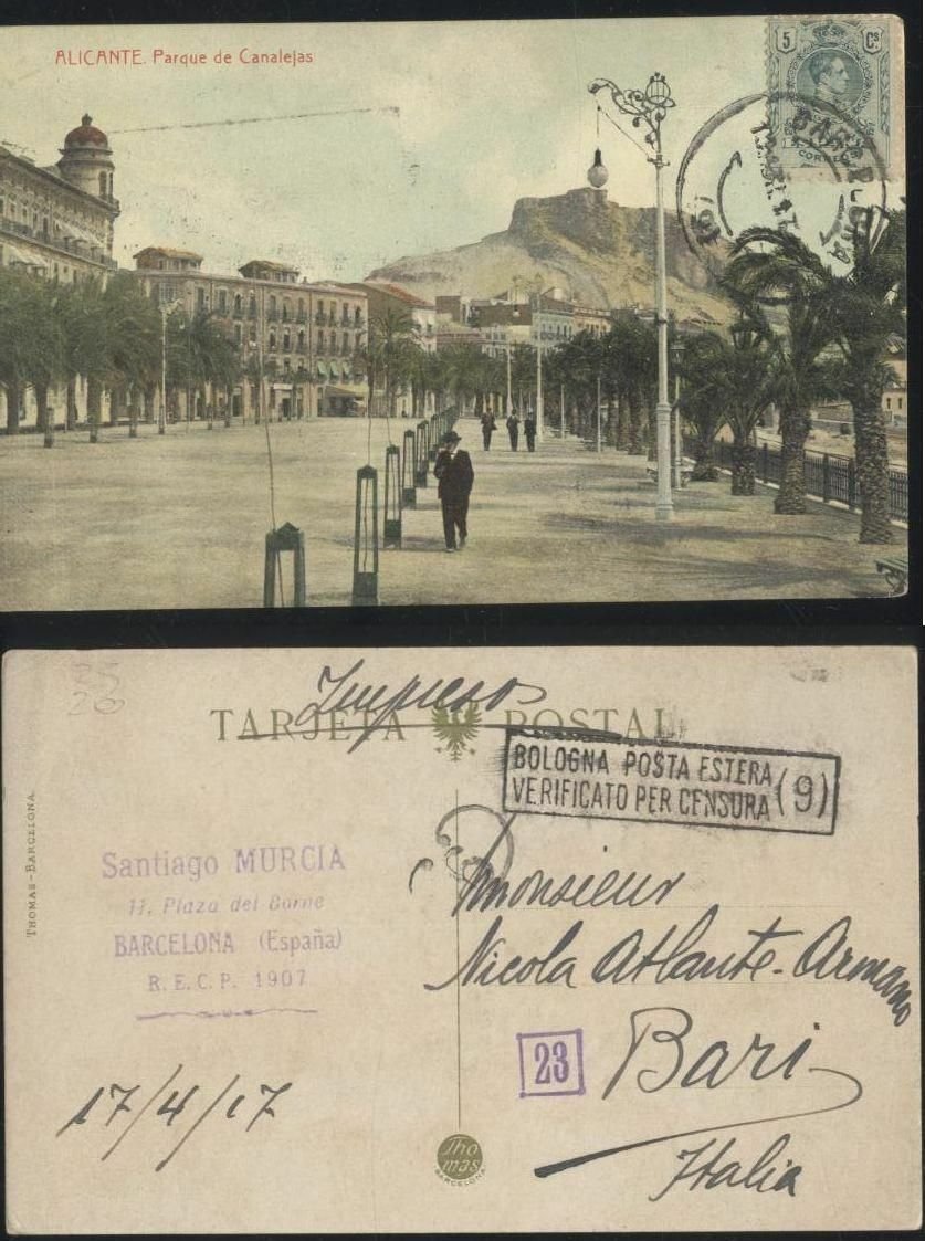ALICANTE parque de Canalejas - cartolina viaggiata 1917 postcard tarjeta postal