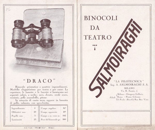 Brochure "Binocoli da teatro SALMOIRAGHI - Milano"