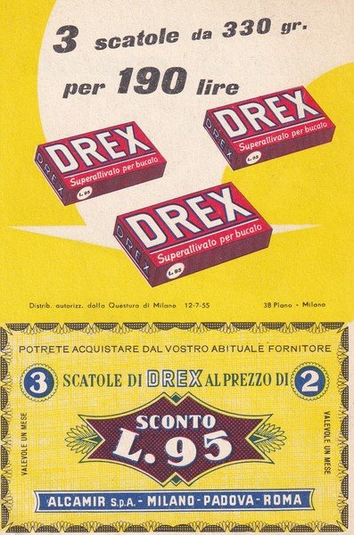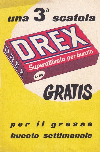 Brochure pubblicitaria sapone DREX "Superattivato per bucato". Alcamir Spa 1955