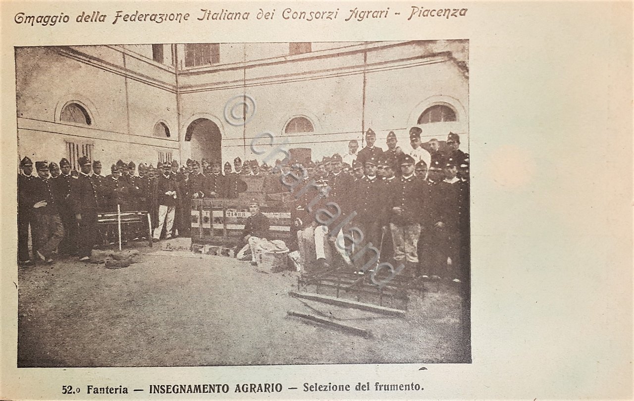 Cartolina - 52^ Fanteria - Insegnamento Agrario - Selezione del frumento 1900 ca