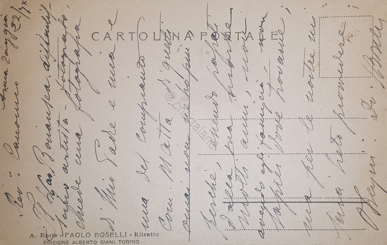 Cartolina - A. Enrie - Ritratto di Paolo Boselli - 1921