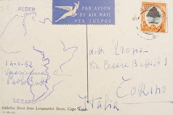 Cartolina - Adderley Street from Longmarket Street - Cape Town - 1952