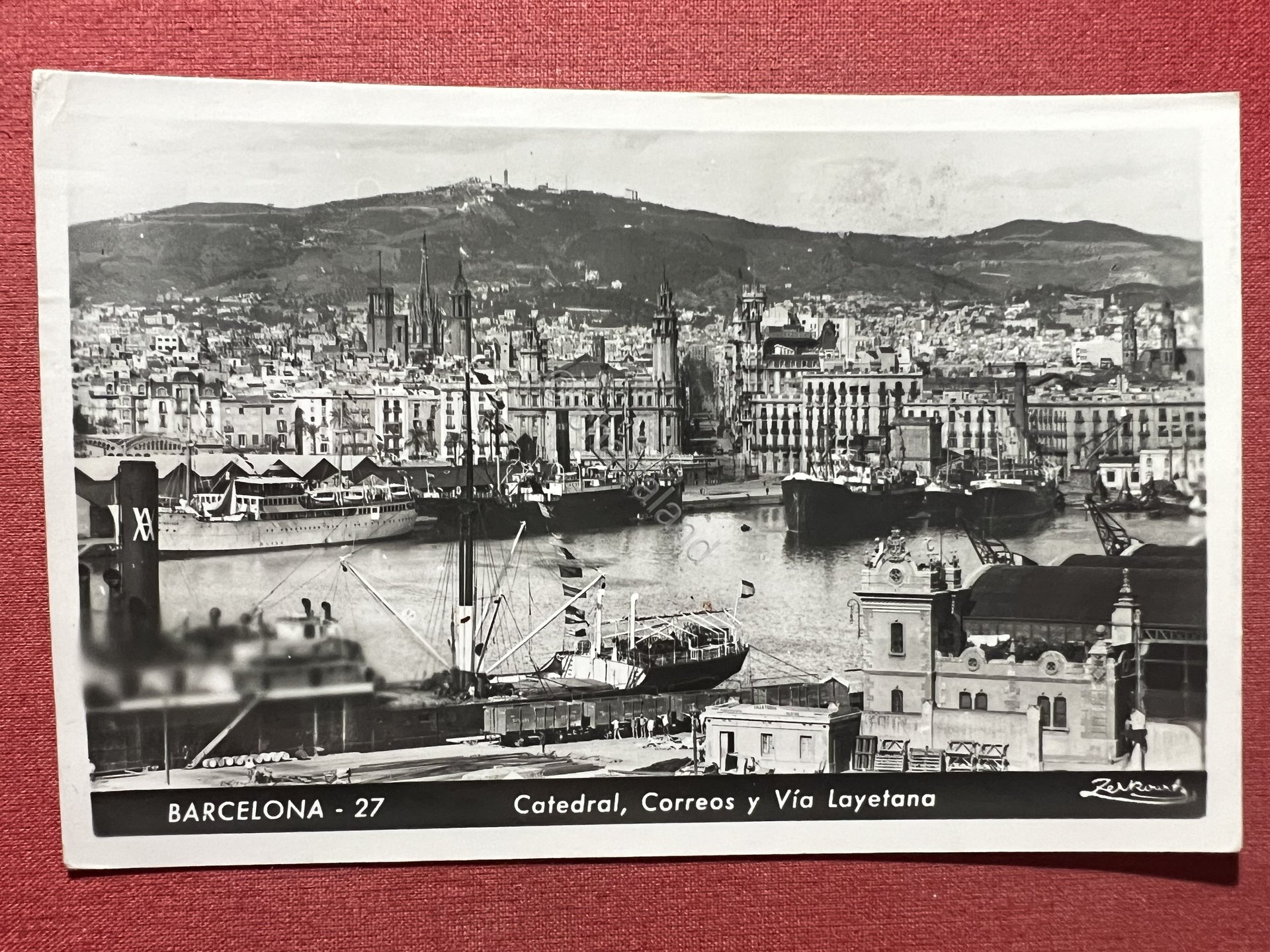Cartolina - Barcelona - Catedral - Correos y Via Layetana - 1953