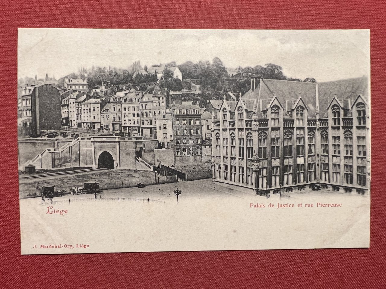 Cartolina - Belgio - Liege - Palais de Justice et rue Pierreuse - 1900 ca.