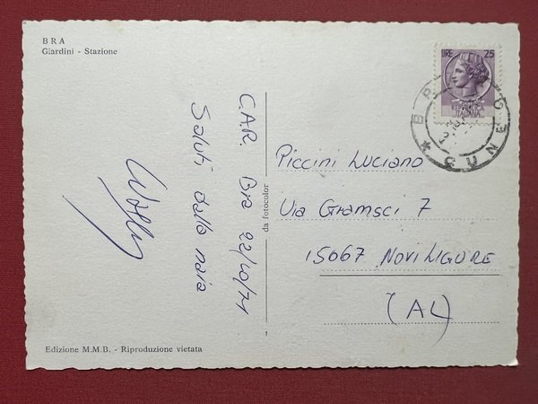 Cartolina - Bra ( Cuneo ) - Giardini - Stazione - 1971