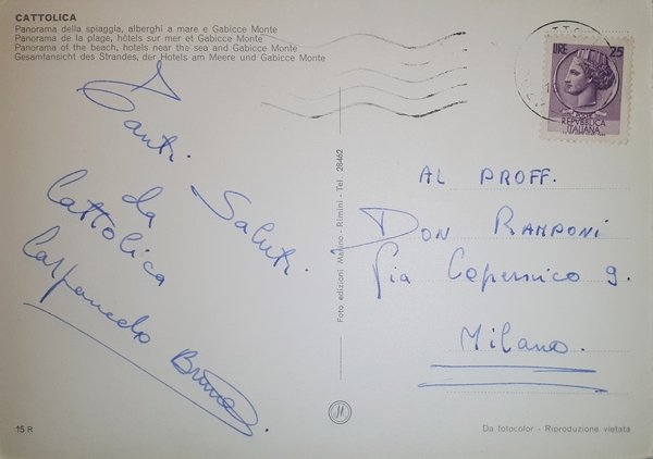 Cartolina - Cattolica - Panorama della spiaggia - Gabicce Monte - 1969
