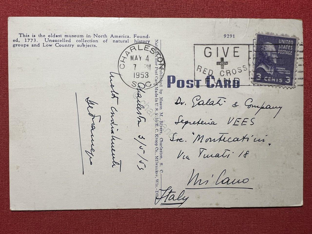 Cartolina - Charleston Museum - Charleston - 1953