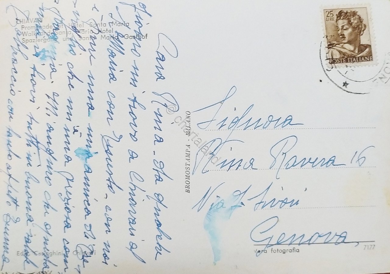 Cartolina - Chiavari - Passeggiata e Albergo Santa Maria - 1960 ca.