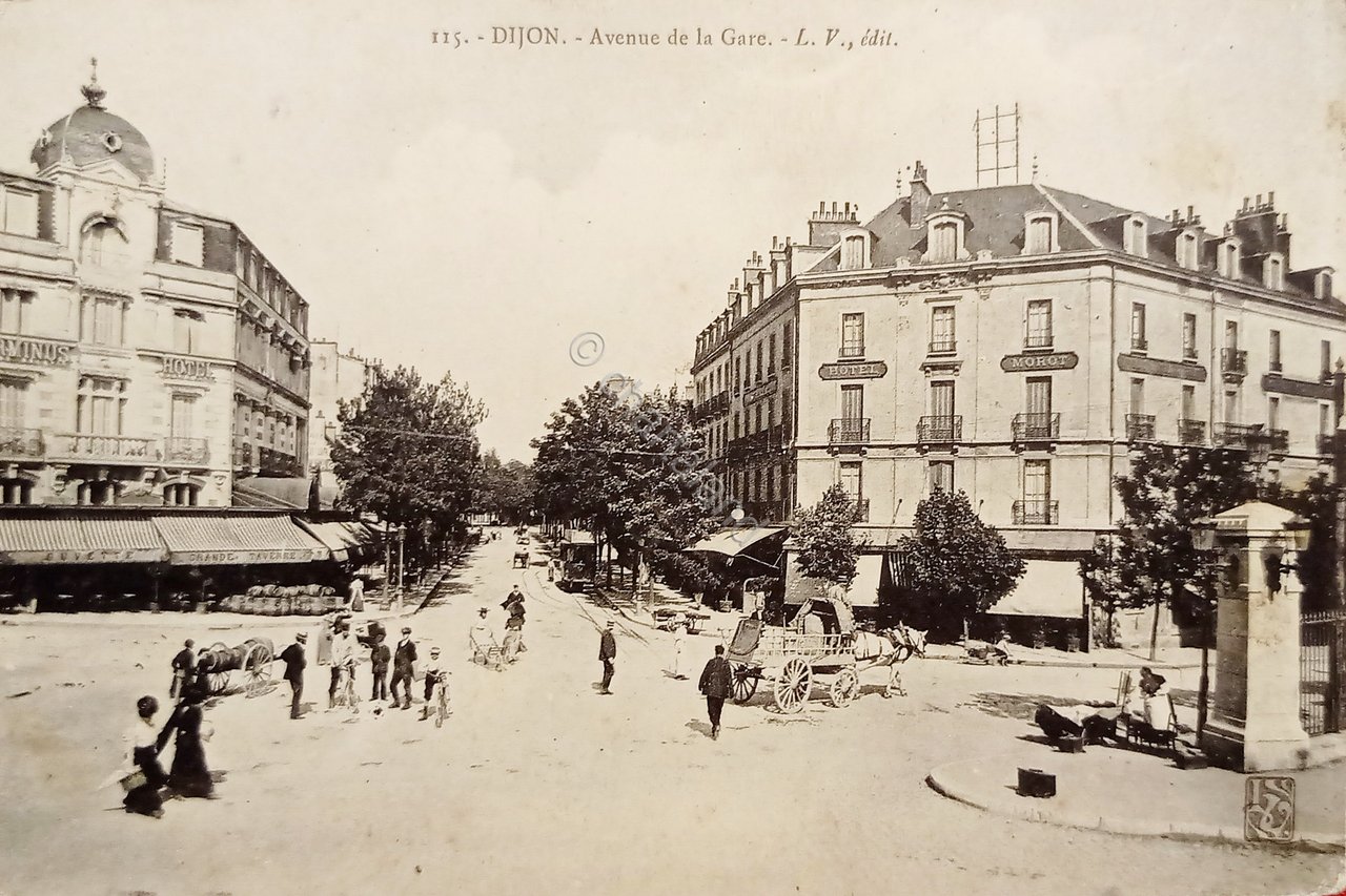 Cartolina - Francia - Dijon - Avenue de la Gare - 1907