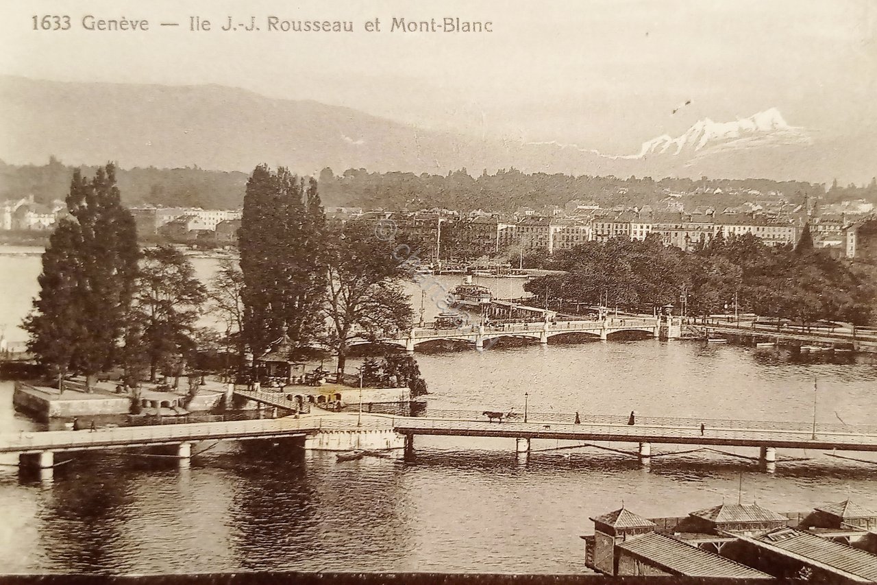 Cartolina - Geneve - J. J. Rousseau et Mont Blanc - 1925 ca.