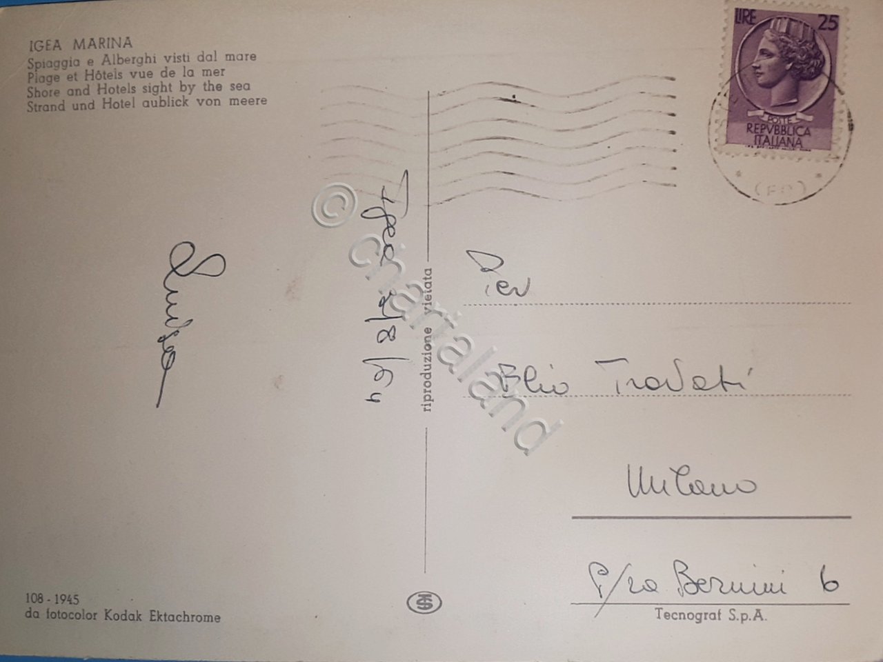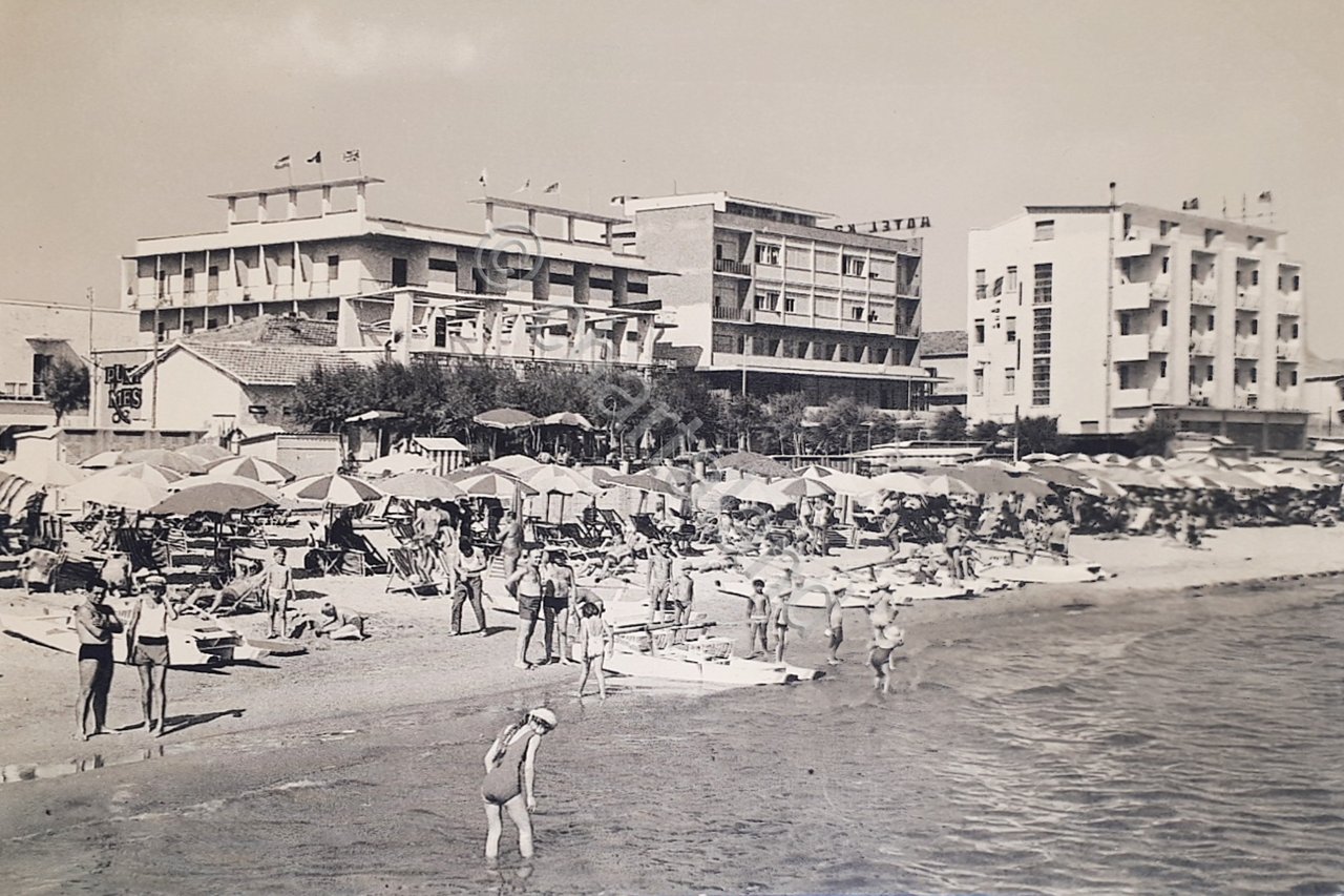 Cartolina - Igea Marina - Spiaggia e Alberghi visti dal mare - 1964