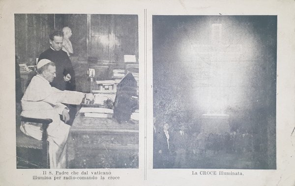 Cartolina - Il S. Padre che dal Vaticano - La Croce illuminata - 1933