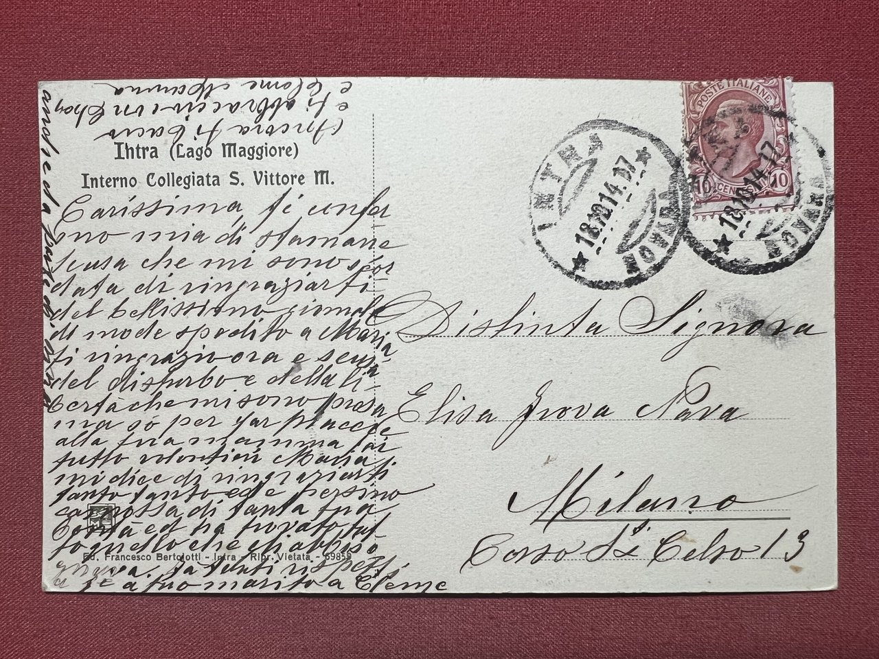 Cartolina - Intra ( Lago Maggiore ) - Interno Collegiata S. Vittore III - 1914