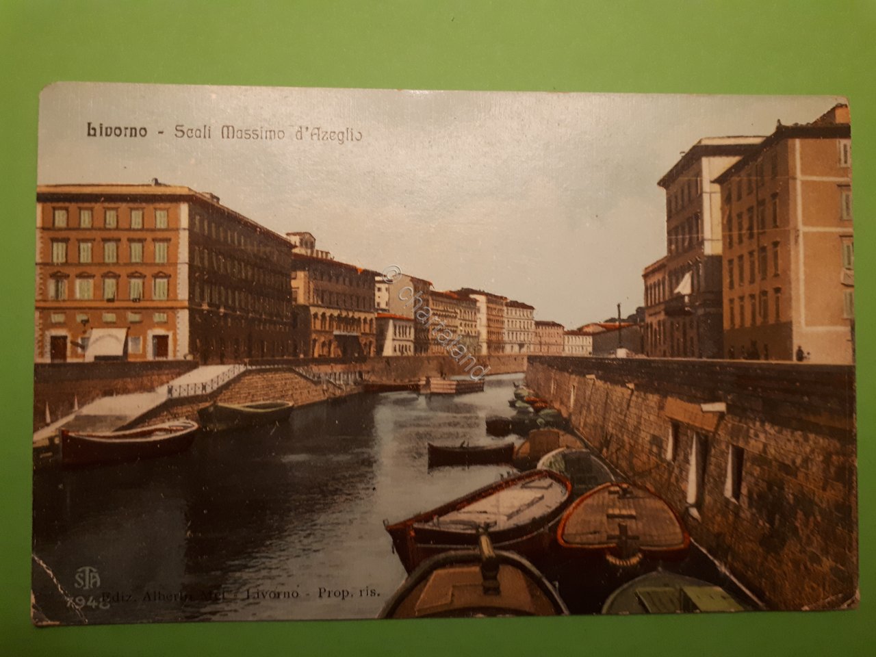 Cartolina - Livorno - Scali Massimo d'Azeglio - 1915