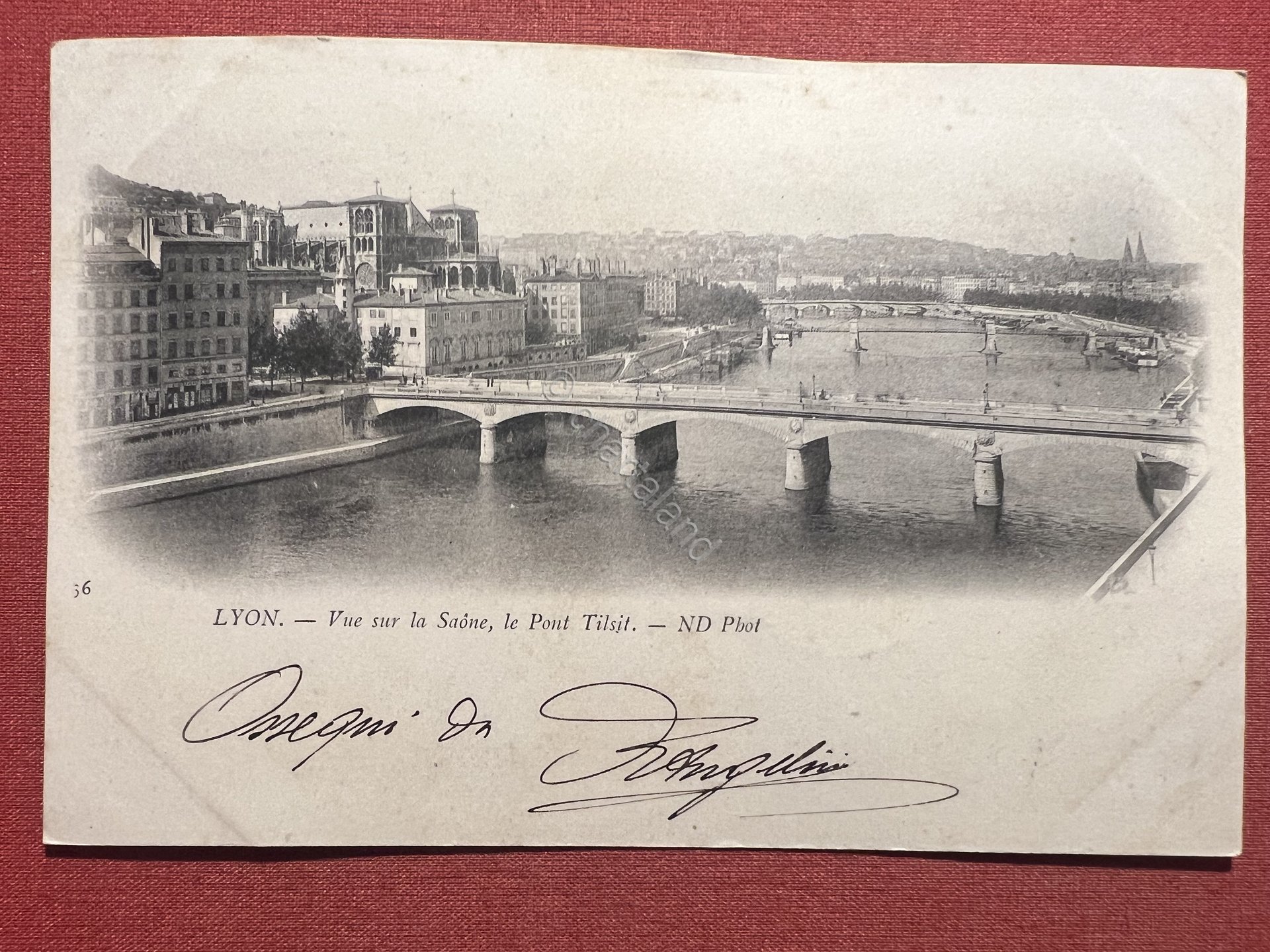 Cartolina - Lyon - Vue sur la Saòne, le Pont Tilsit - 1902