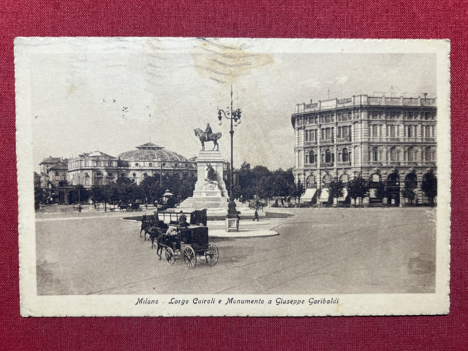 Cartolina - Milano - Largo Cairoli e Monumento a Giuseppe Garibaldi - 1923