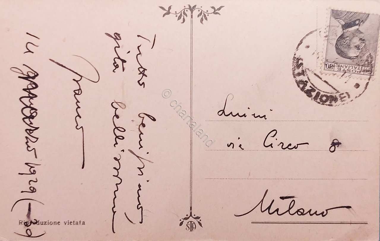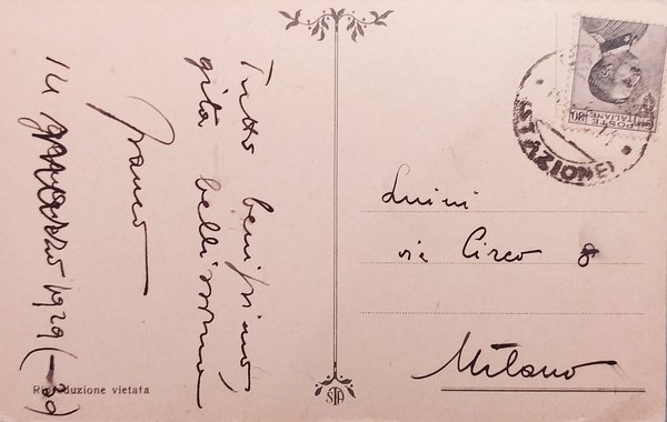 Datata 1929 Cartolina formato piccolo - viaggiata Condizioni molto buone, come da foto