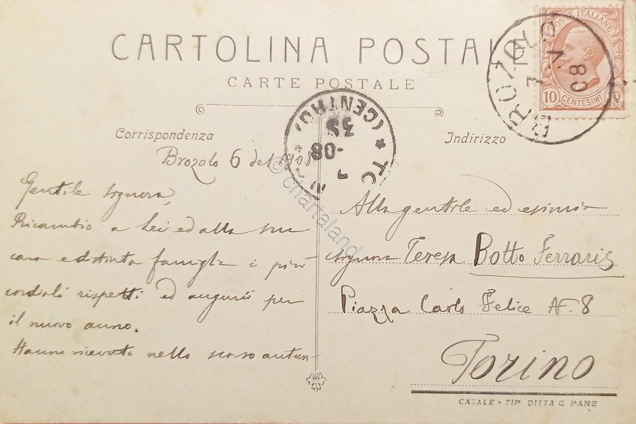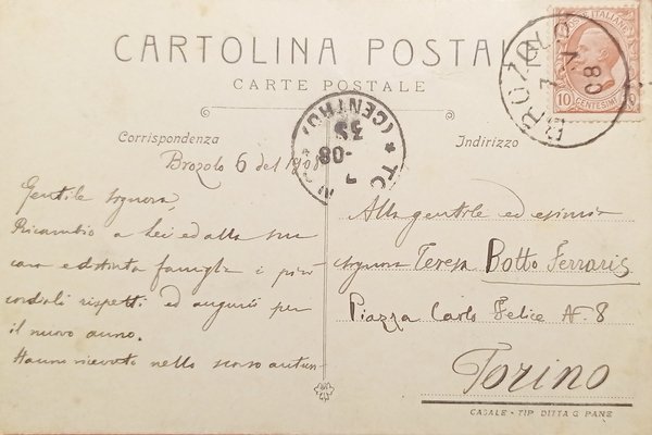 Cartolina - Panorama di Brozolo - Circondario di Torino - 1908