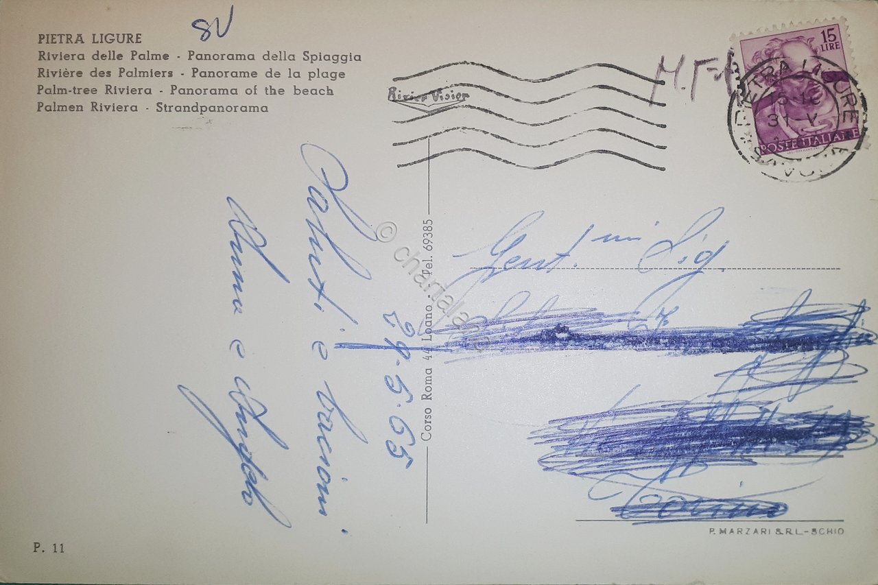 Cartolina - Pietra Ligure - Riviera delle Palme - Panorama della Spiaggia - 1965