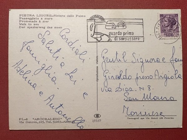 Cartolina - Pietra Ligure - Riviera delle Palme - Passeggiata a Mare - 1968