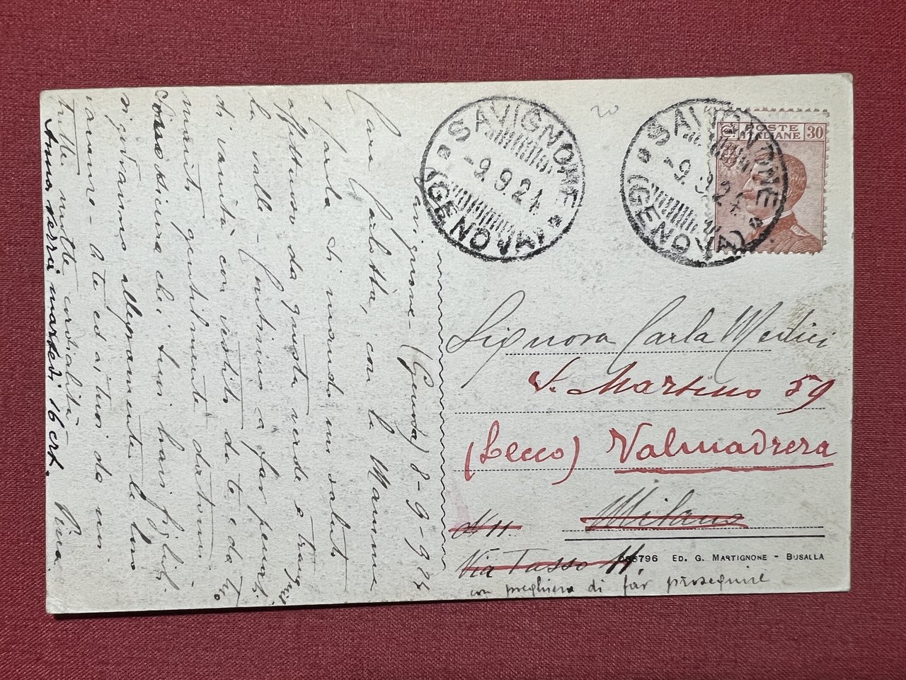 Cartolina - Savignone ( Genova ) - Panorama - 1924