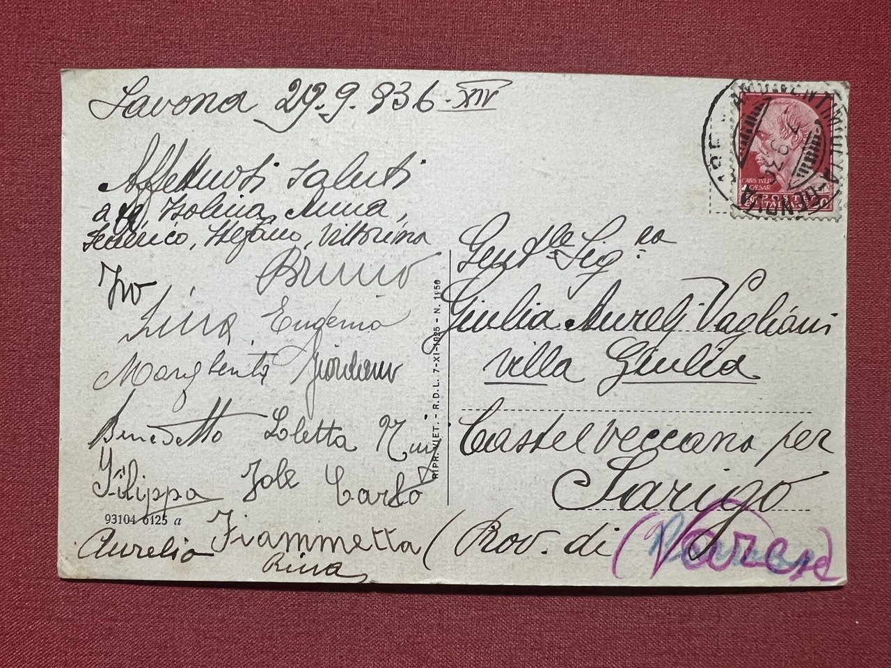 Cartolina - Savona - Giardini Pubblici - 1936