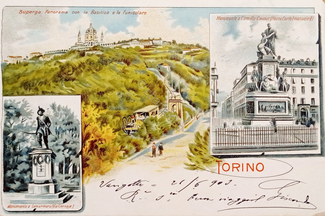 Cartolina - Torino - Superga Panorama con la Basilica e la Funicolare - 1903