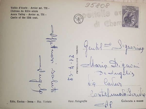 Cartolina - Valle d'Aosta - Arvier - Castello del XIII Secolo - 1959