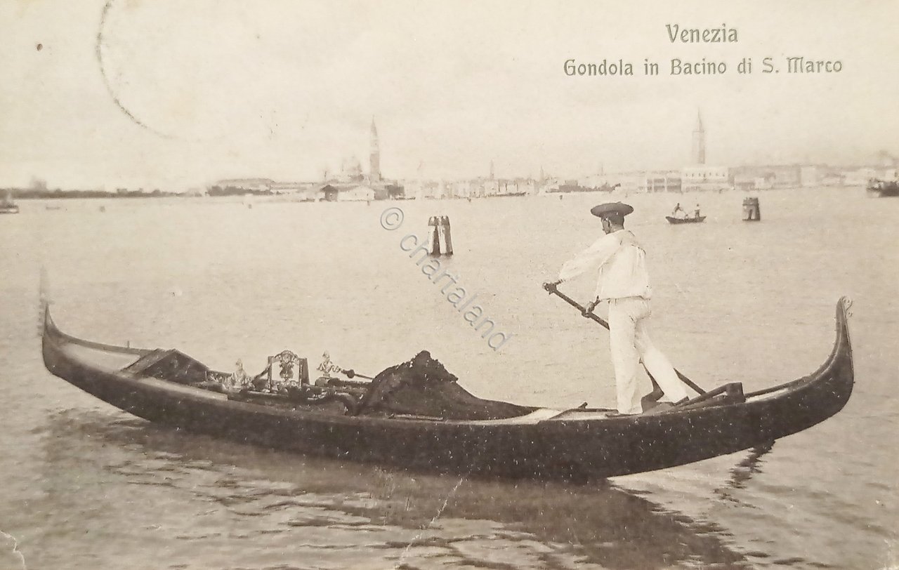 Cartolina - Venezia - Gondola in Bacino di S. Marco - 1912