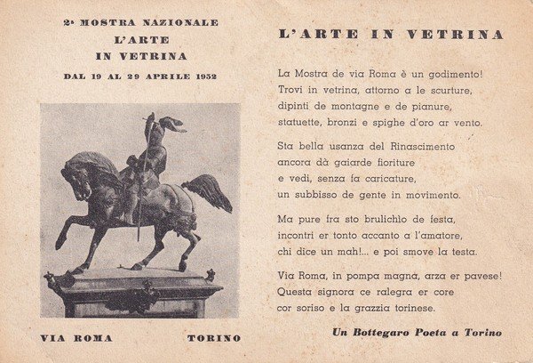 Cartolina 2° Mostra Nazionale L'Arte in Vetrina - Torino. 1952