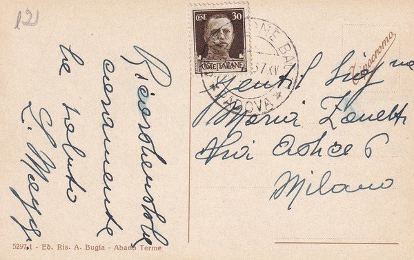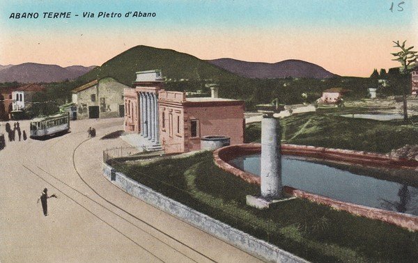 Cartolina Abano Terme (Padova) - Via Pietro d'Abano. 1937