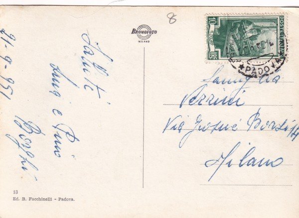 Cartolina Abano Terme (Padova) - Via Pietro d'Abano. 1951