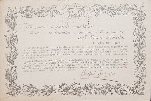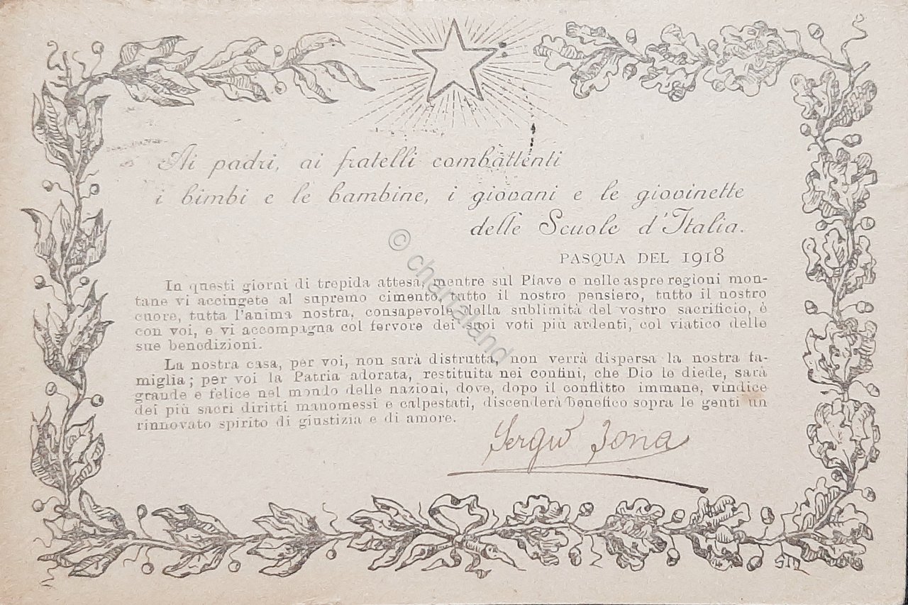 Cartolina Ai padri, ai fratelli combattenti .... Pasqua del 1918