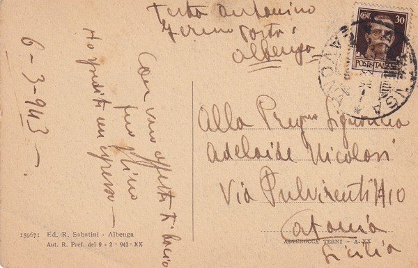Cartolina ALBENGA (Savona) - Via Trieste. 1943
