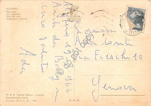 Cartolina Alghero panorama dall'alto 1966