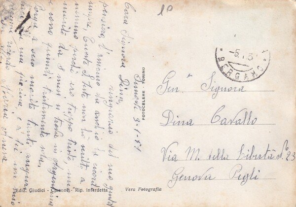 Cartolina Alta Val Seriana - Clusone - Vasti campi di sci - Pianone zona Formico. 1951