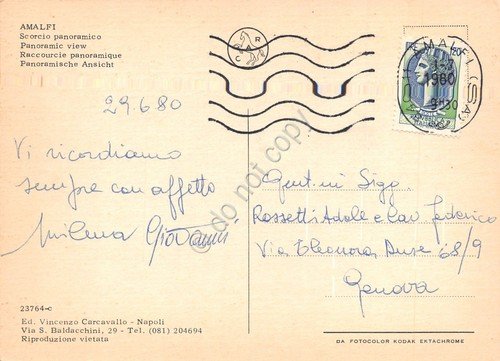 Cartolina Amalfi panorama parziale dal mare al tramonto 1980 | Cartoline |