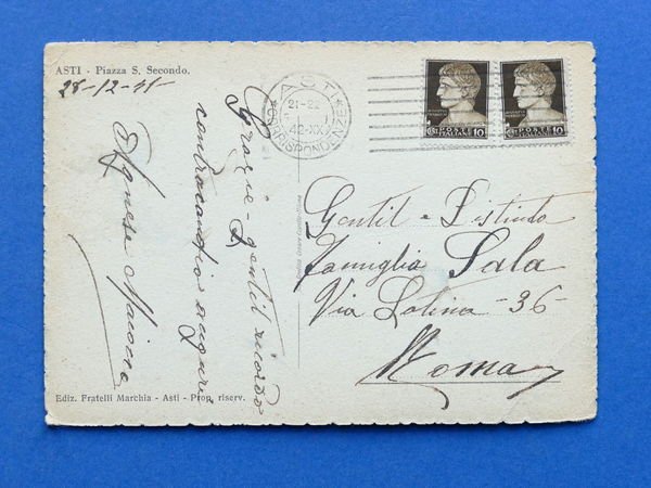 Cartolina Asti - Piazza S. Secondo - 1942