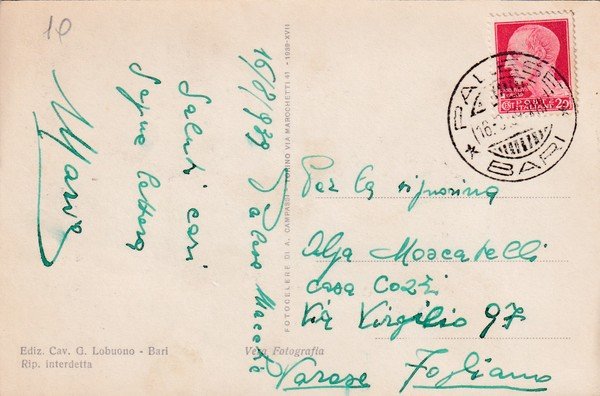 Cartolina BARI - Spiaggia Lido S. Francesco. 1939