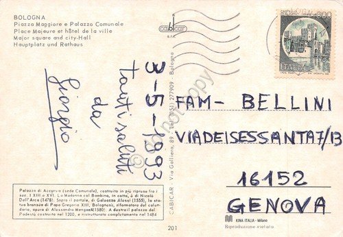 Cartolina Bologna Piazza Maggiore e Palazzo Comunale animata 1993 | Cartoline |