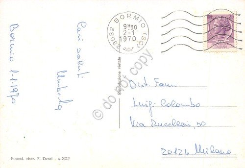 Cartolina Bormio vedute varie funivia paese sciatore 1970