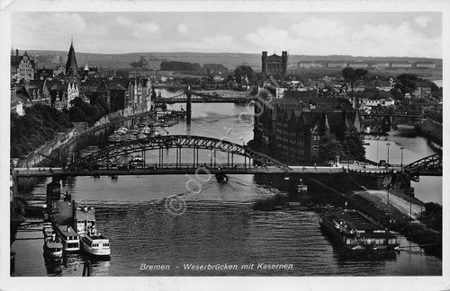 Cartolina Bremen Weserbrucken mit kasermen 1938