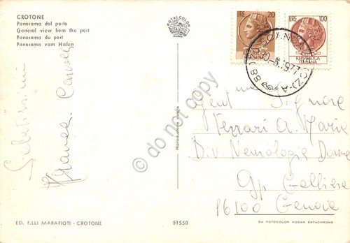 Cartolina Calabria Crotone panorama dal porto barca 1977