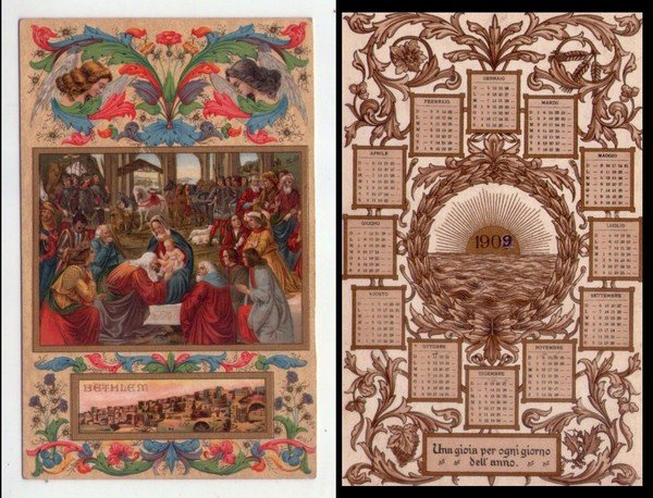 Cartolina/calendario Sacra Famiglia - Natività - Bethlem. 1909