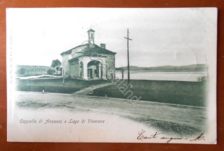 Cartolina Cappella di Anzasco e Lago di Viverone - 1902