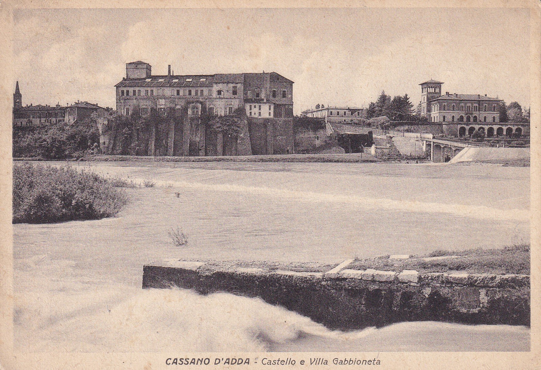 Cartolina Cassano d'Adda (Milano) - Castello e Villa Gabbioneta. 1942