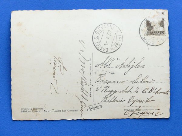 Cartolina Castel S. Giovanni - Corso Umberto I - 1937 1937 Cartolina formato grande - viaggiata Condizioni buone, come da foto Per appassionati, studiosi e collezionisti