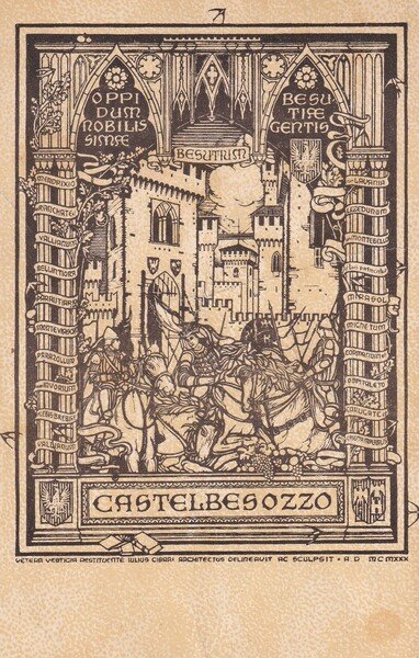 Cartolina CASTELBESOZZO dei Signori di BESOZZO (Varese). Incisione di GIULIO CISARI Anni´30