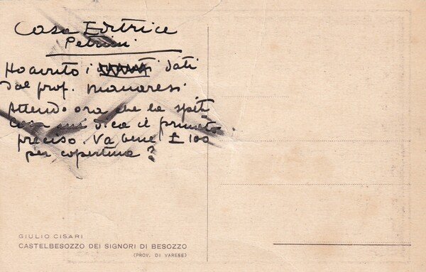Non Viaggiata. Sul retro scritta di Cisari