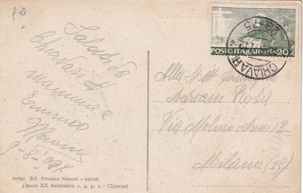 Cartolina Chiavari (Genova) - Piazza XX Settembre. 1927